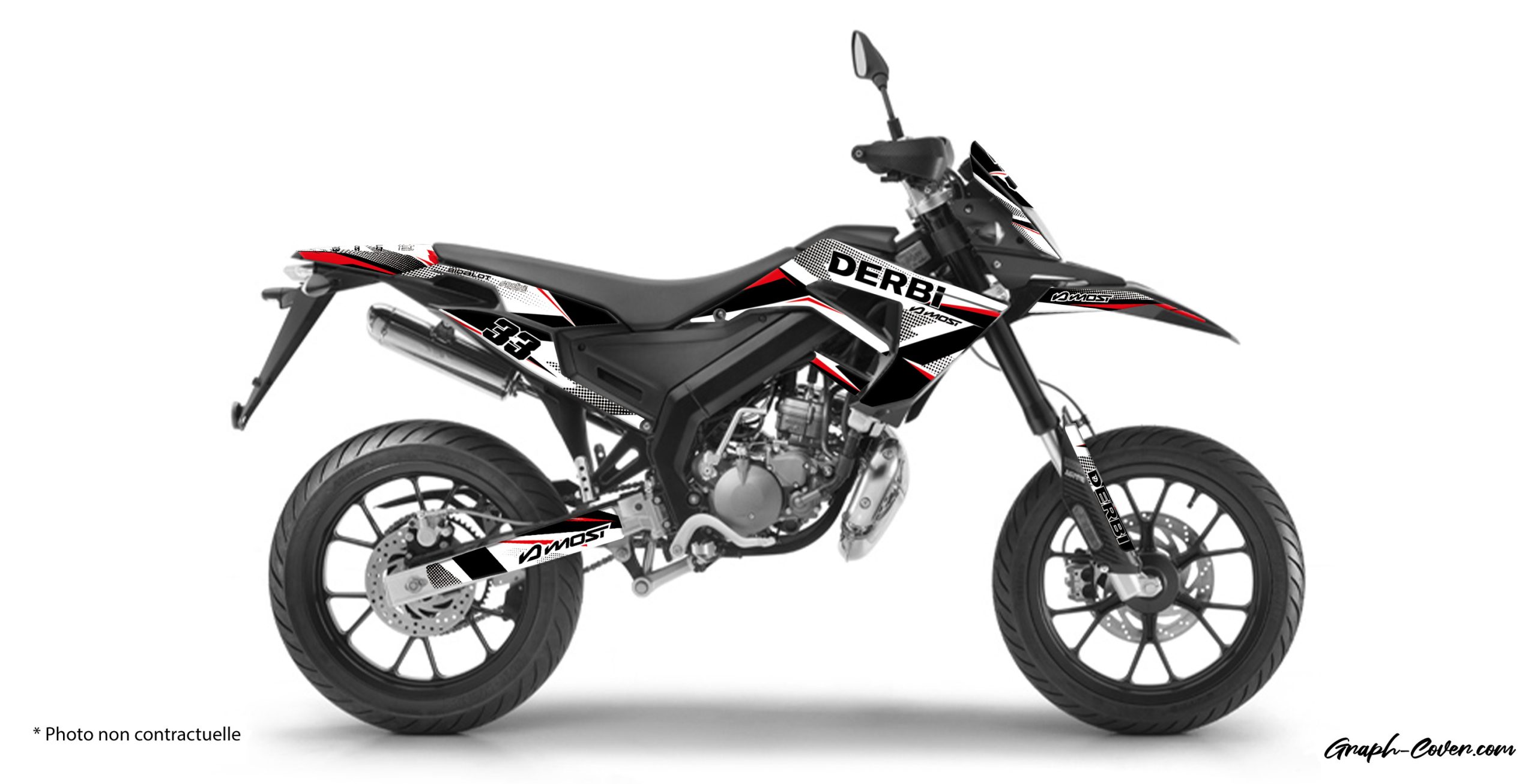 Composition du Kit déco Full : Plaque avant, Plaques latérales, Boîtes à air (pour certains modèles), Garde-boue avant, Garde-boue arrière, Ouies de radiateur, Protections de fourche (pour certains modèles), Bras oscillants (pour certains modèles).