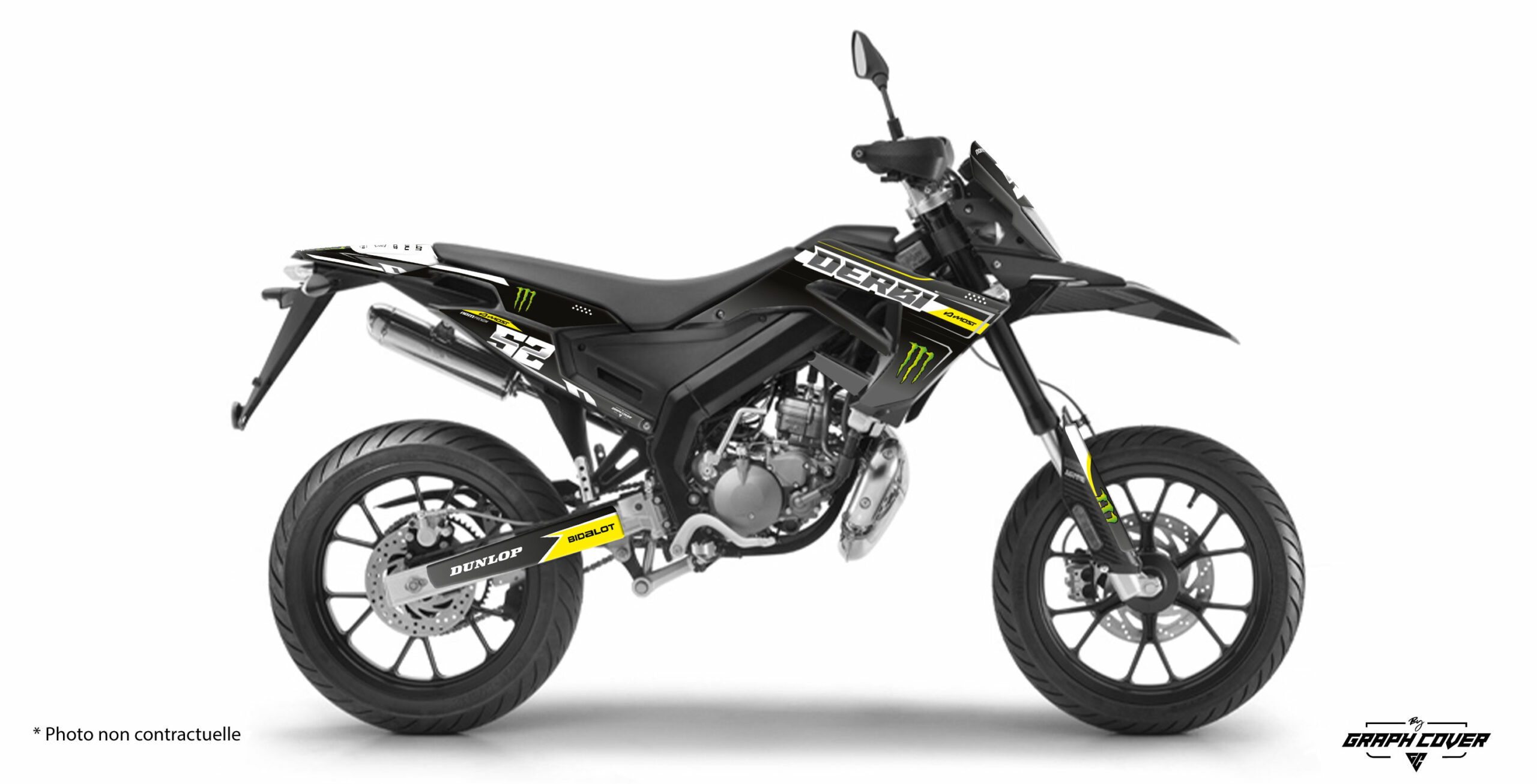 Notre kit décoration 50cc semi-perso pour motos 50cc est la solution idéale pour donner un nouveau look esthétique à votre moto. Avec une large gamme de coloris et d’options, vous pouvez créer un kit décoration 50cc parfaitement adapté à votre moto grâce avec la possibilité d’intégrer des garde-boue ou des plaques de phares qui ne sont pas d’origine. Pour vous offrir le meilleur, Graph Cover utilise une impression haute résolution et une impression numérique en quadrichromie avec des couleurs vibrantes de haute qualité qui ne s’estompent pas avec le temps grâce au revêtement résistant aux UV, pour votre kit décoration 50cc Derbi DRD racing.