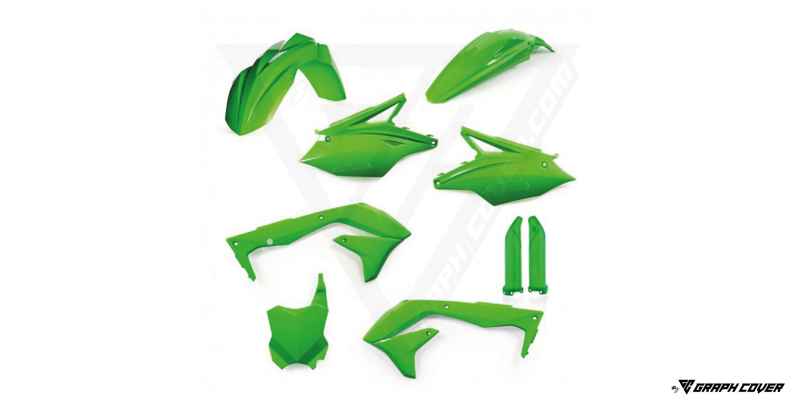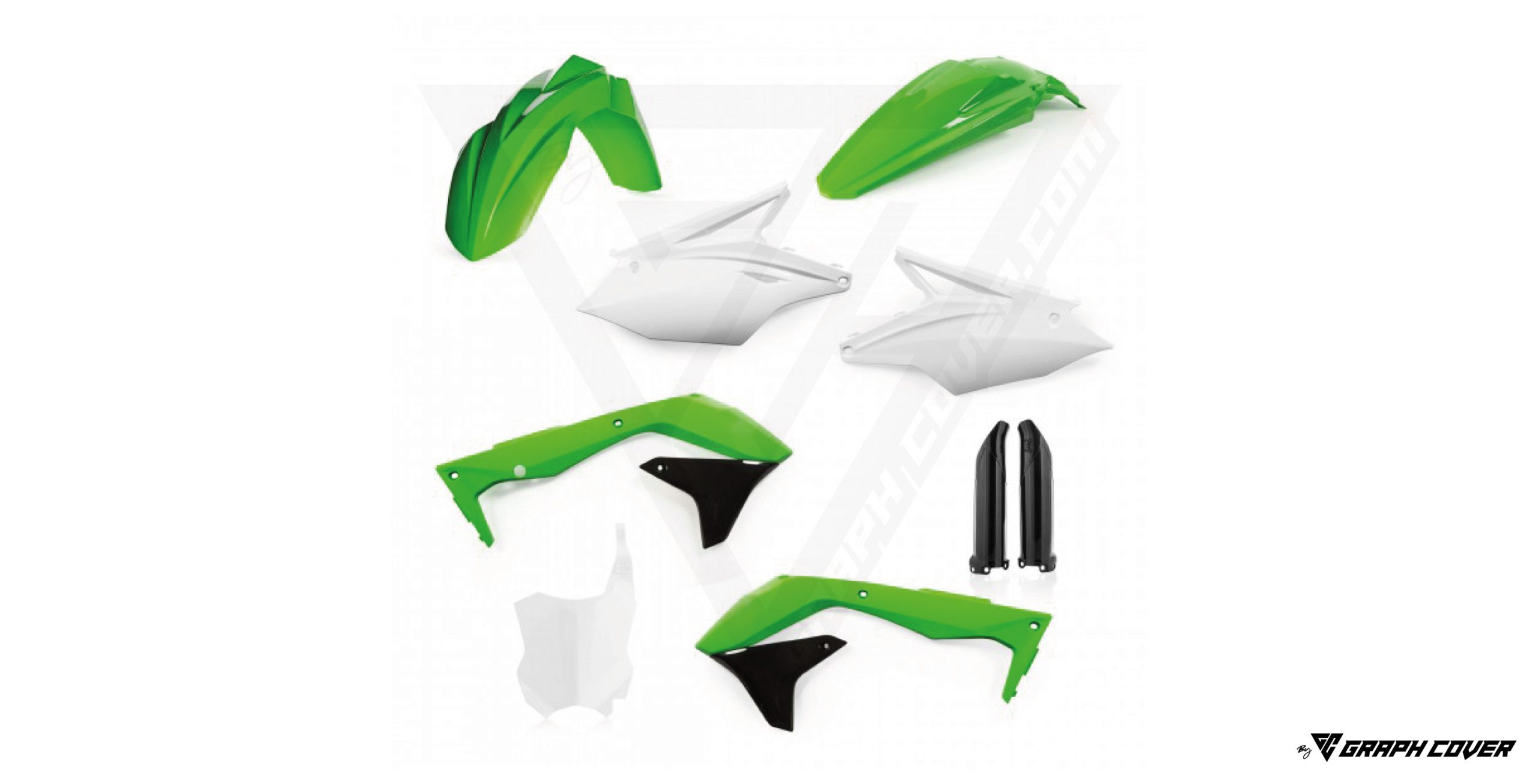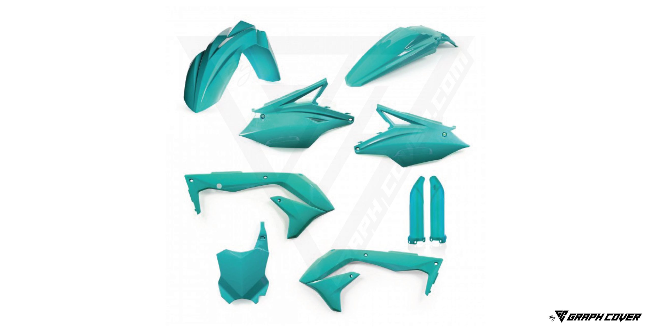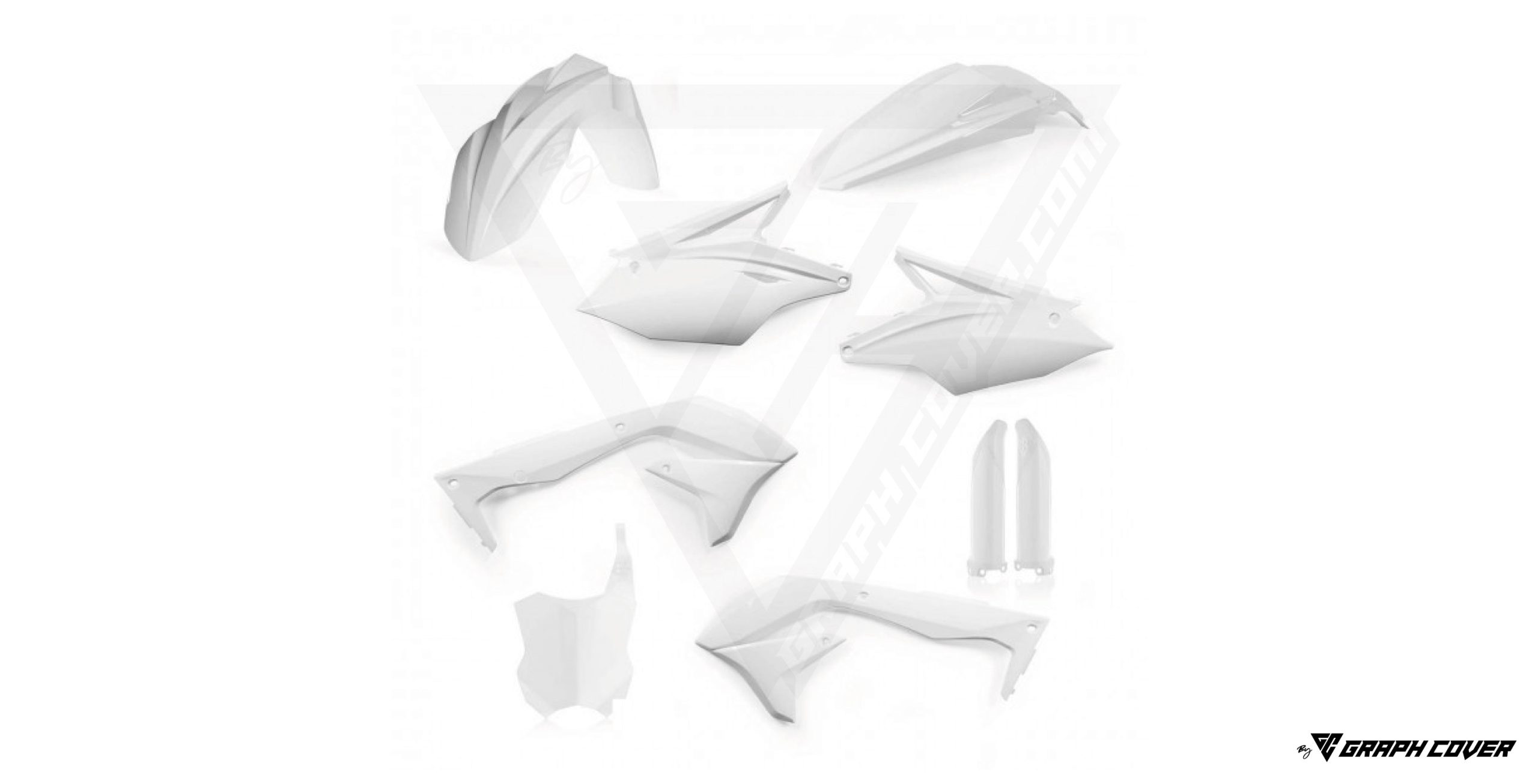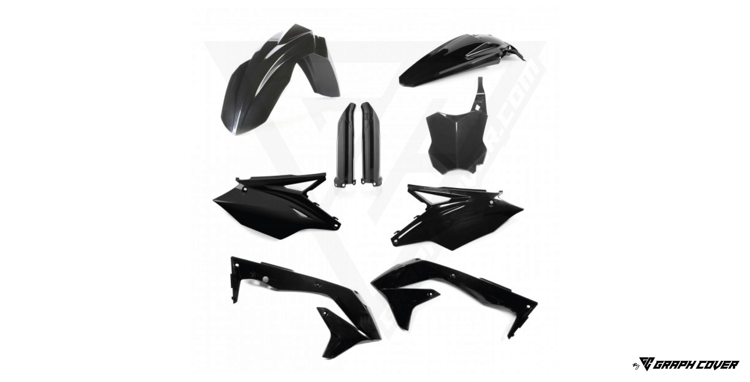 Plaque Avant, Plaques latérales, Garde-boue avant, Garde-boue arrière, Ouies de radiateur, Protections de fourche.