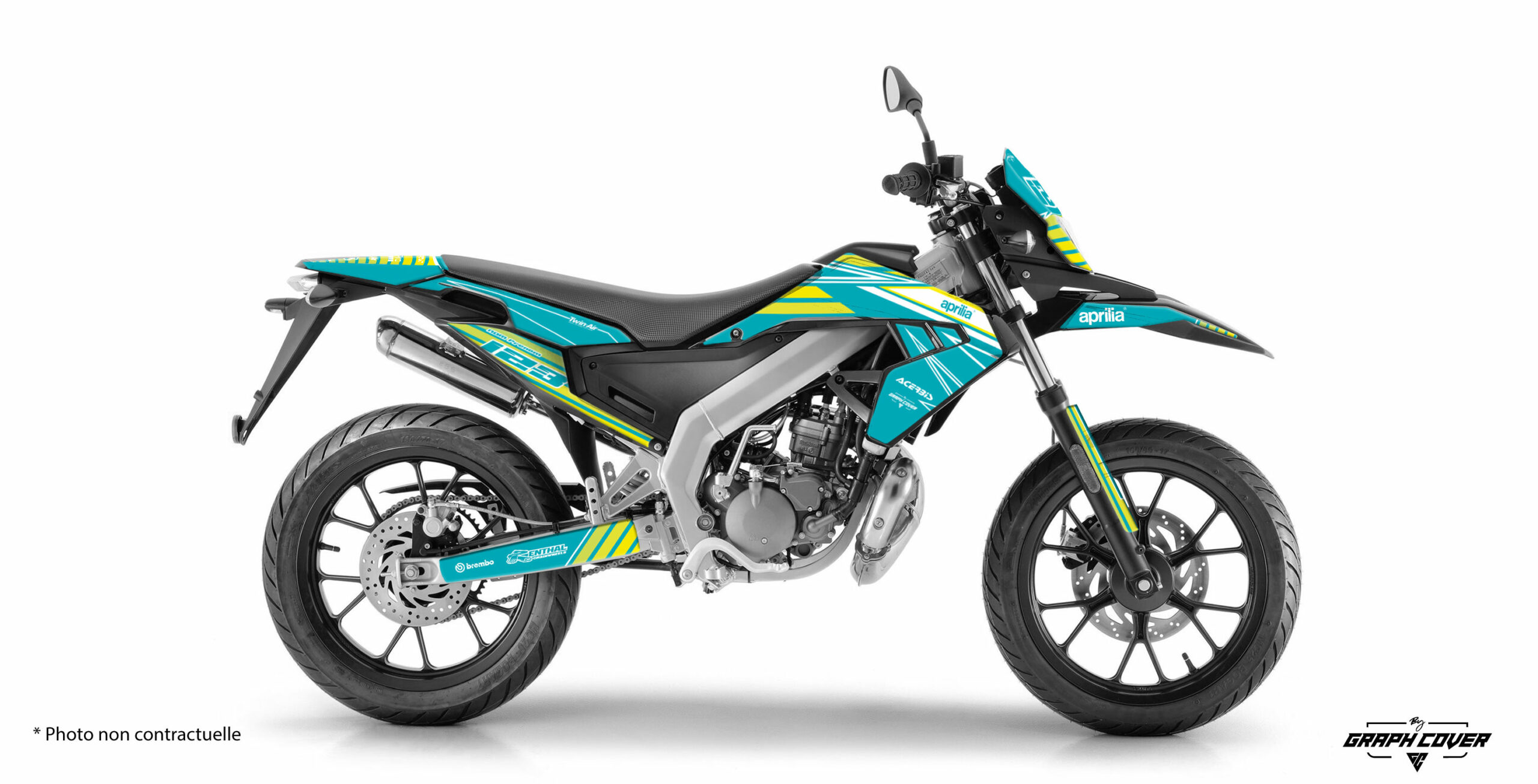 Notre Kit déco Aprilia semi-perso pour motos 50cc est la solution idéale pour donner un nouveau look esthétique à votre moto. Avec une large gamme de coloris et d’options, vous pouvez créer un kit décoration 50cc parfaitement adapté à votre moto grâce avec la possibilité d’intégrer des garde-boue ou des plaques de phares qui ne sont pas d’origine. Pour vous offrir le meilleur, Graph Cover utilise une impression haute résolution et une impression numérique en quadrichromie avec des couleurs vibrantes de haute qualité qui ne s’estompent pas avec le temps grâce au revêtement résistant aux UV, pour votre Kit déco Aprilia.