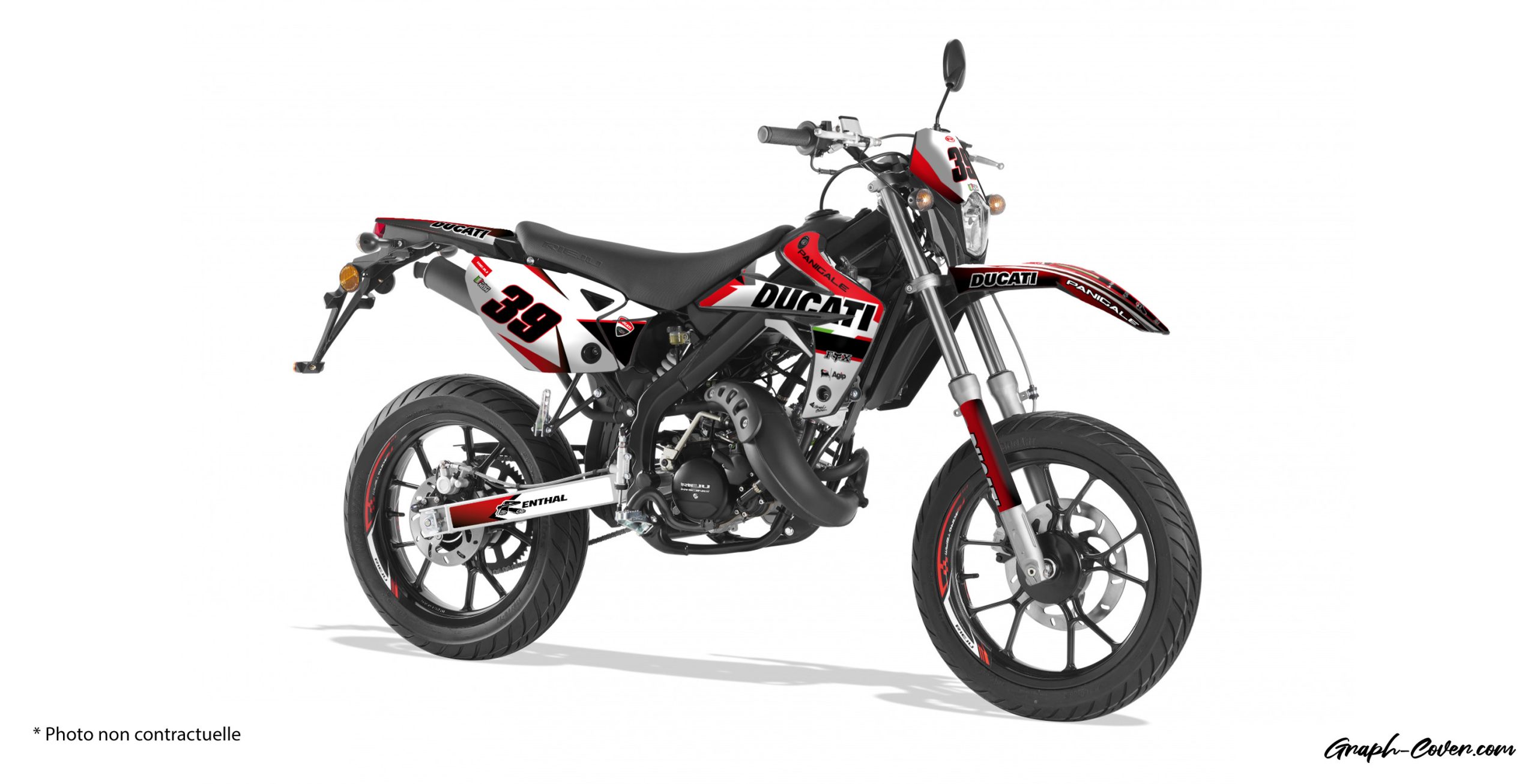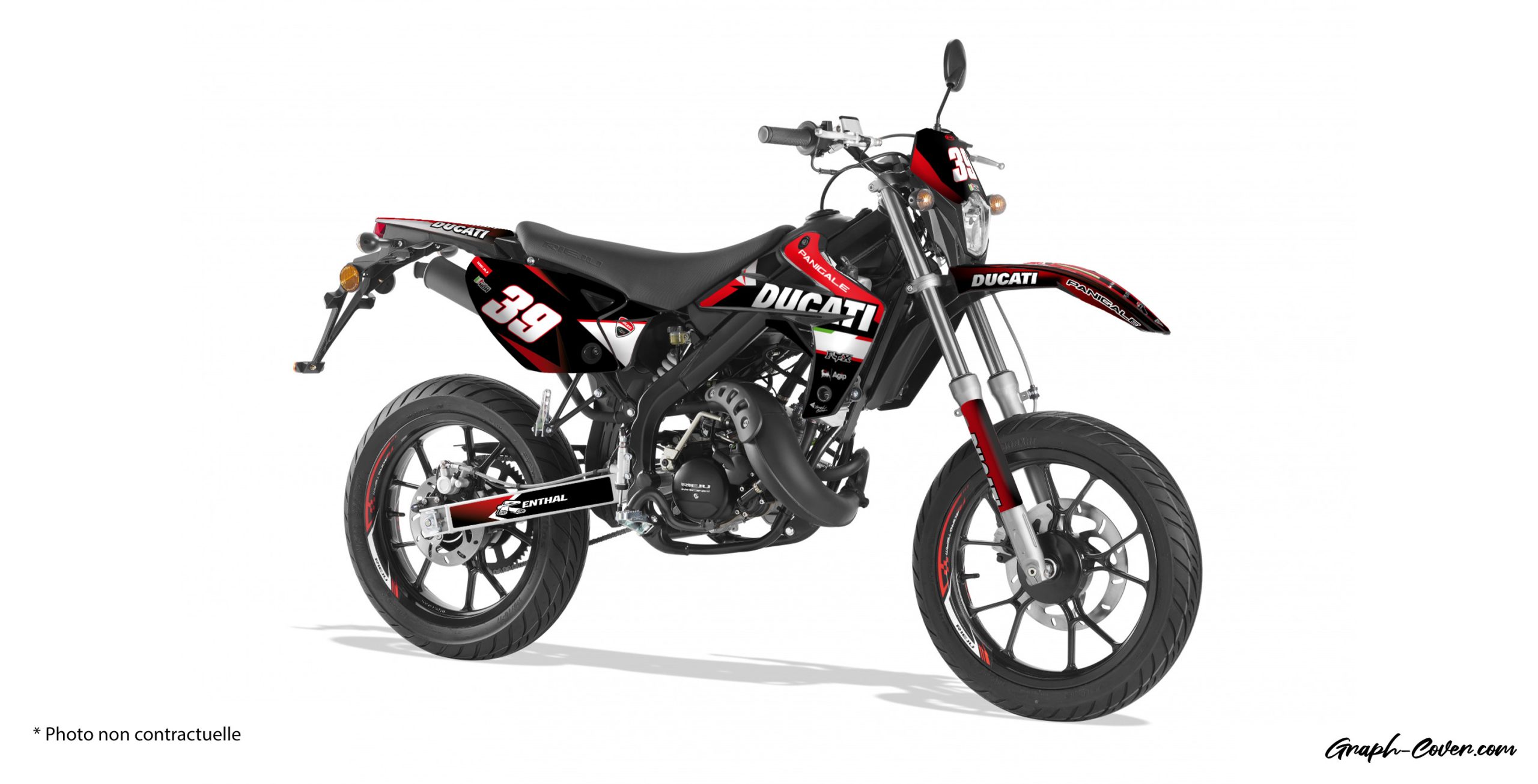 Composition du Kit déco Full : Plaque avant, Plaques latérales, Boîtes à air (pour certains modèles), Garde-boue avant, Garde-boue arrière, Ouies de radiateur, Protections de fourche (pour certains modèles), Bras oscillants (pour certains modèles).