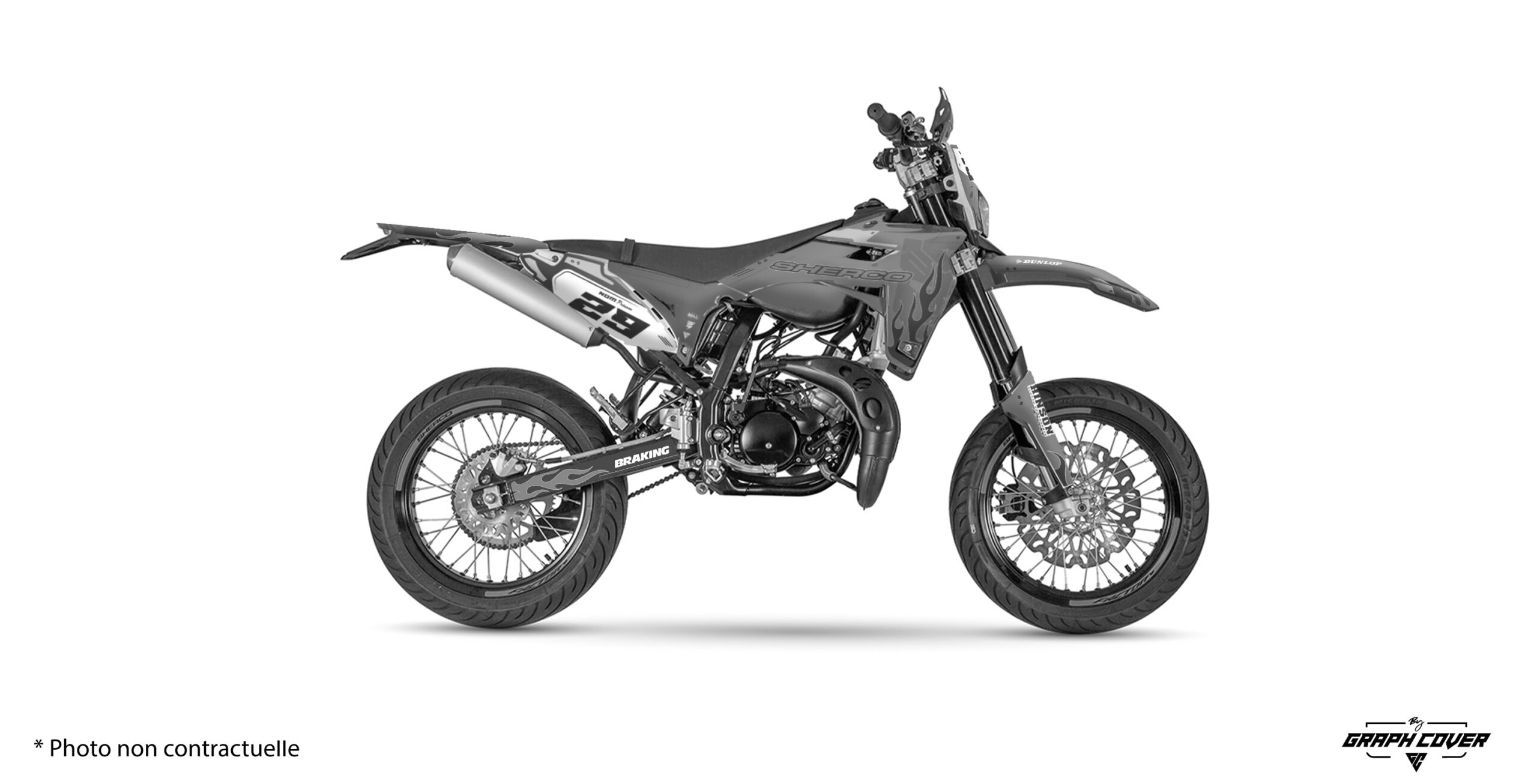 Le Kit déco Sherco 50cc est compatible avec les modèles Sherco SM-R et SM-RS 50, toutes années confondues. Il a été conçu pour s’adapter parfaitement à la forme des plastiques d’origine. Vous profitez ainsi d’un rendu professionnel sans prise de tête. Chaque pièce est découpée avec précision dans notre atelier, pour un ajustement parfait sur votre moto.
