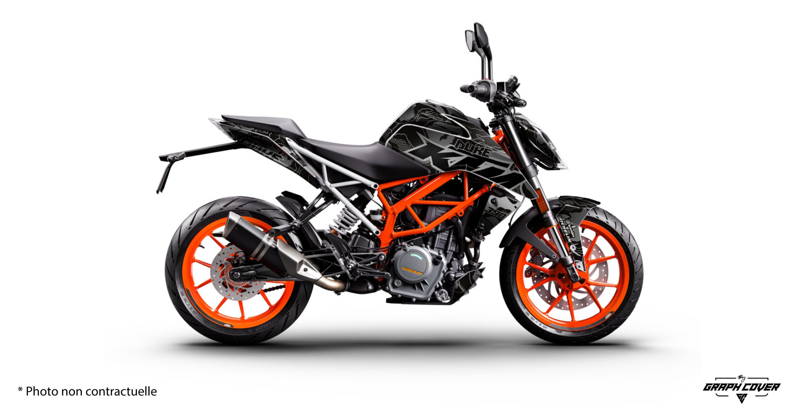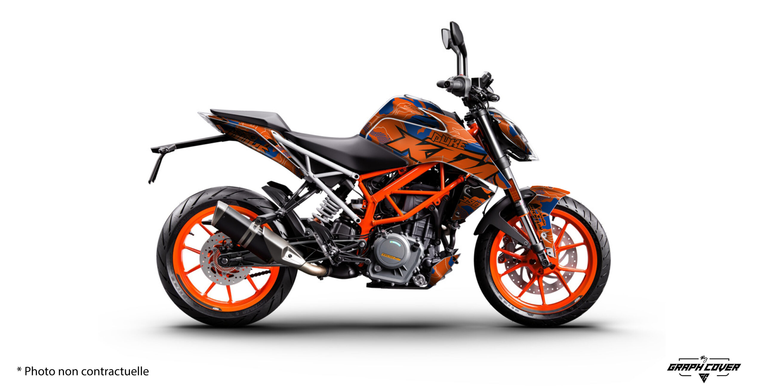 Ce kit s’adapte aux modèles KTM 125 Duke et 390 Duke. Toutefois, le rendu peut légèrement varier selon l’année du véhicule.