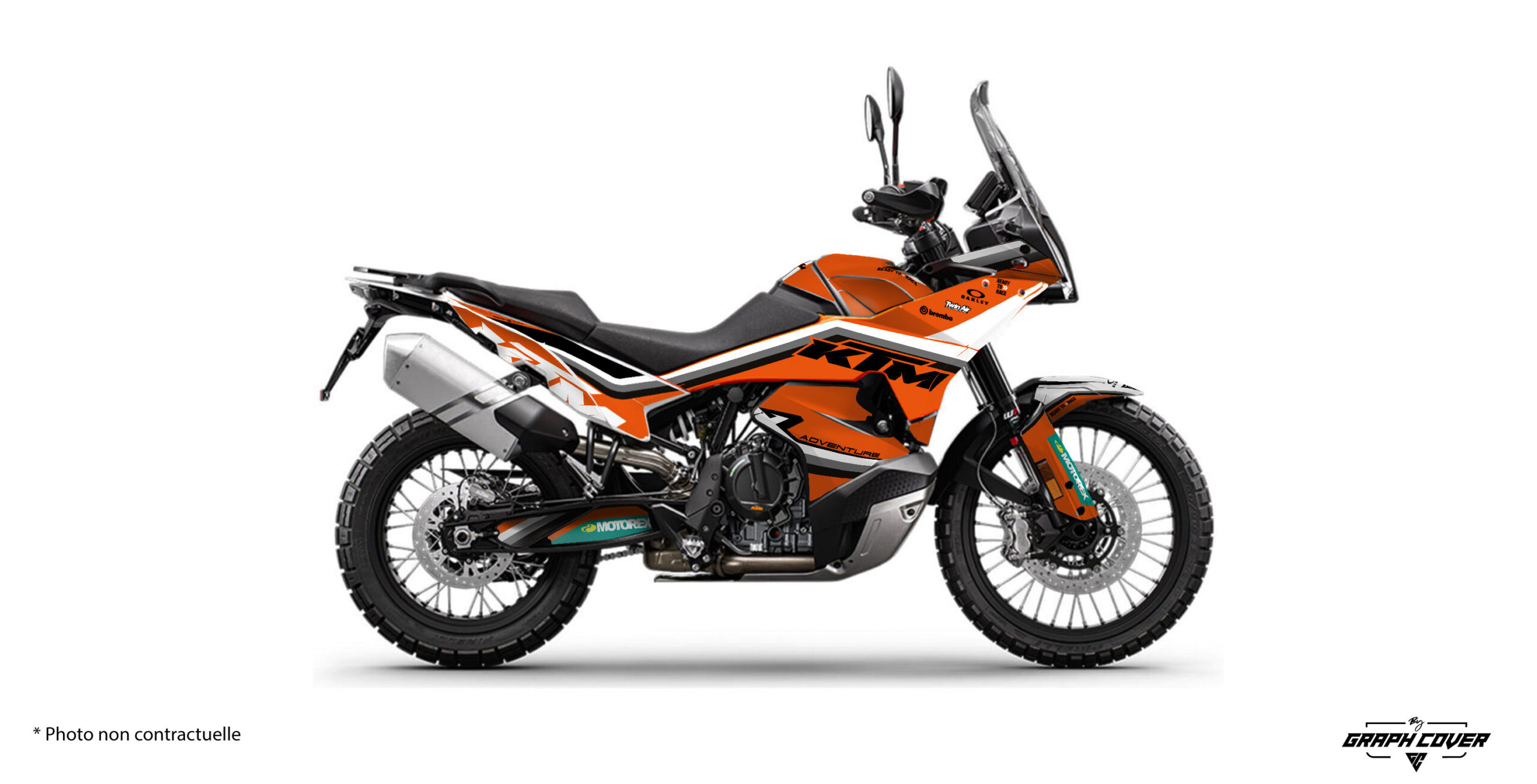 En bref, la KTM 890 ADVENTURE est une vraie aventurière. Mise à jour pour 2024, la KTM 890 ADVENTURE offre une maniabilité inégalée sur tous les terrains, des autoroutes aux sentiers de chèvre. Avec ses nouvelles suspensions réglables, sa selle encore plus confortable et sa bulle de protection contre le vent, la KTM 890 ADVENTURE 2024 est prête à t’emmener partout. Offrez à votre machine un look unique avec notre kit déco KTM 890 Adventure personnalisable.