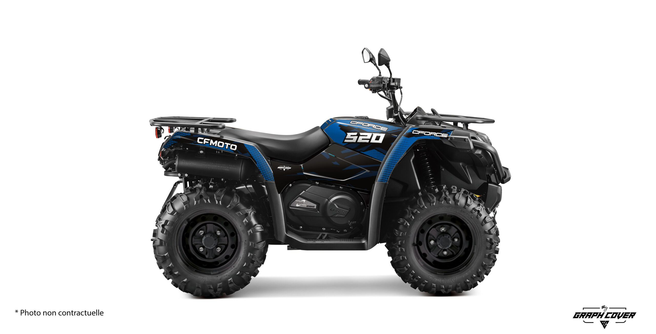Ce modèle est adapté aux CFORCE 450 et 520 courts et longs produits entre 2015 et 2022. Vérifie simplement que ton quad correspond à ces générations pour une installation parfaite. Tous les éléments sont prédécoupés : ailes avant, flancs, capot, arrière… Rien n’est laissé au hasard.