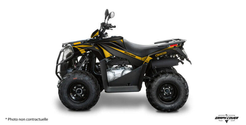 Réalisé dans nos ateliers français avec des matériaux premium, cet habillage adhésif est aussi durable qu’esthétique. Le design Shine, disponible en jaune, orange ou kaki, renforce l’identité visuelle de votre quad tout en protégeant efficacement ses carénages.