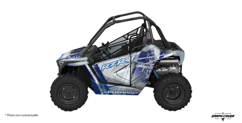 Pensé spécialement pour le Polaris RZR 200 EFI (2021 à actuel), ce kit déco habille le véhicule avec un motif puissant mélangeant effet trame (halftone), projections type splatter, lignes tendues et contrastes agressifs. Le résultat est immédiatement plus sportif. Il renforce les volumes du carénage et donne un style “off-road performance” très recherché – kit déco RZR 200, stickers SSV Polaris, déco racing RZR, kit déco enfant RZR 200 EFI.