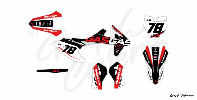 Composition du Kit déco Full : Plaque avant, Plaques latérales, Boîtes à air (pour certains modèles), Garde-boue avant, Garde-boue arrière, Ouies de radiateur, Protections de fourche (pour certains modèles), Bras oscillants (pour certains modèles).