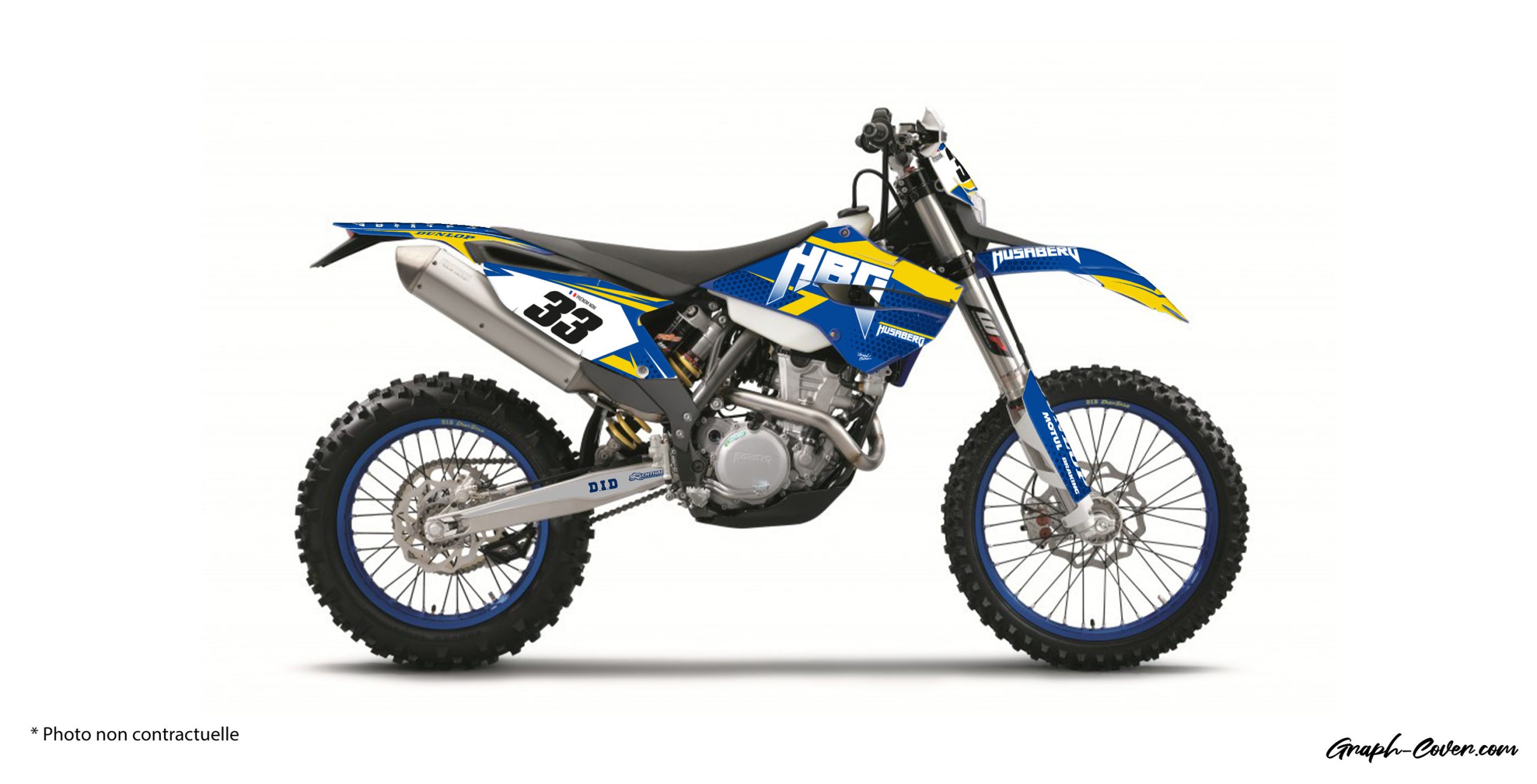 Composition du Kit déco Full : Plaque avant, Plaques latérales, Boîtes à air, Garde-boue avant, Garde-boue arrière, Ouies de radiateur, Protections de fourche, bras oscillants.