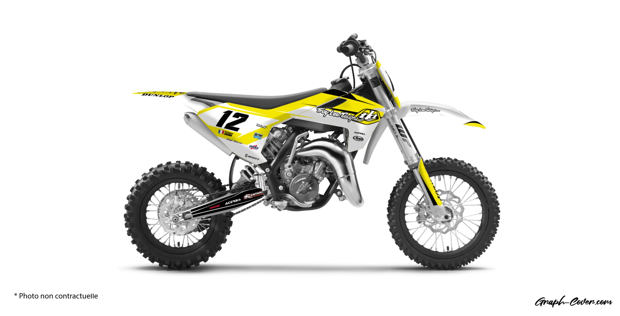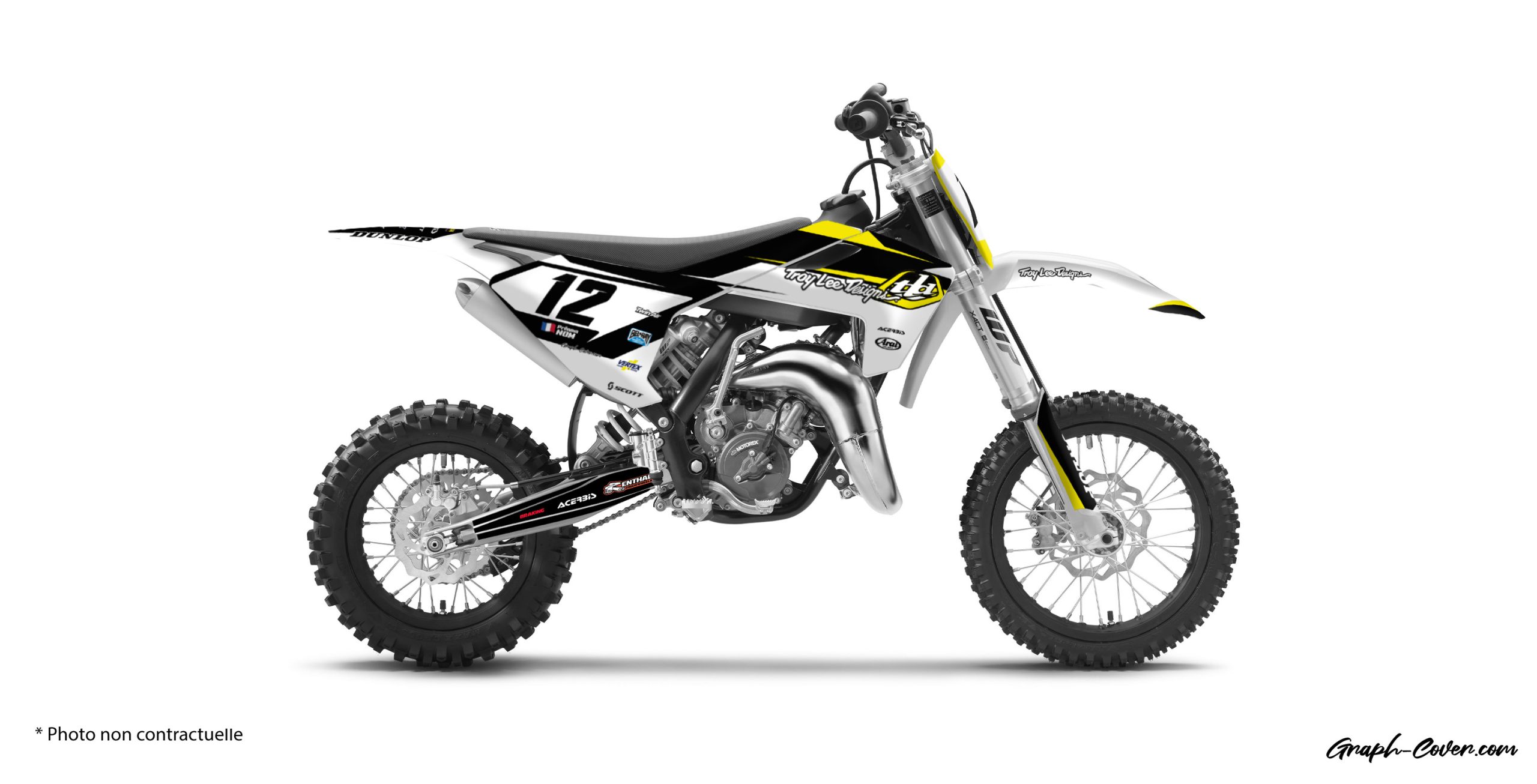 Dotée des dernières technologies en matière de moteurs 2 temps, la Husqvarna TC 65 est une moto extrêmement compétitive dans la catégorie des 65 cm3. Elle est adaptée aux jeunes drivers qui pourront faire l’expérience du pilotage d’une motocross équipée d’un embrayage manuel et d’une boîte de vitesse manuelle. Graph Cover conçoit et imprime des kits déco avec un beau design et de haute qualité au meilleur prix pour les motos Husqvarna.