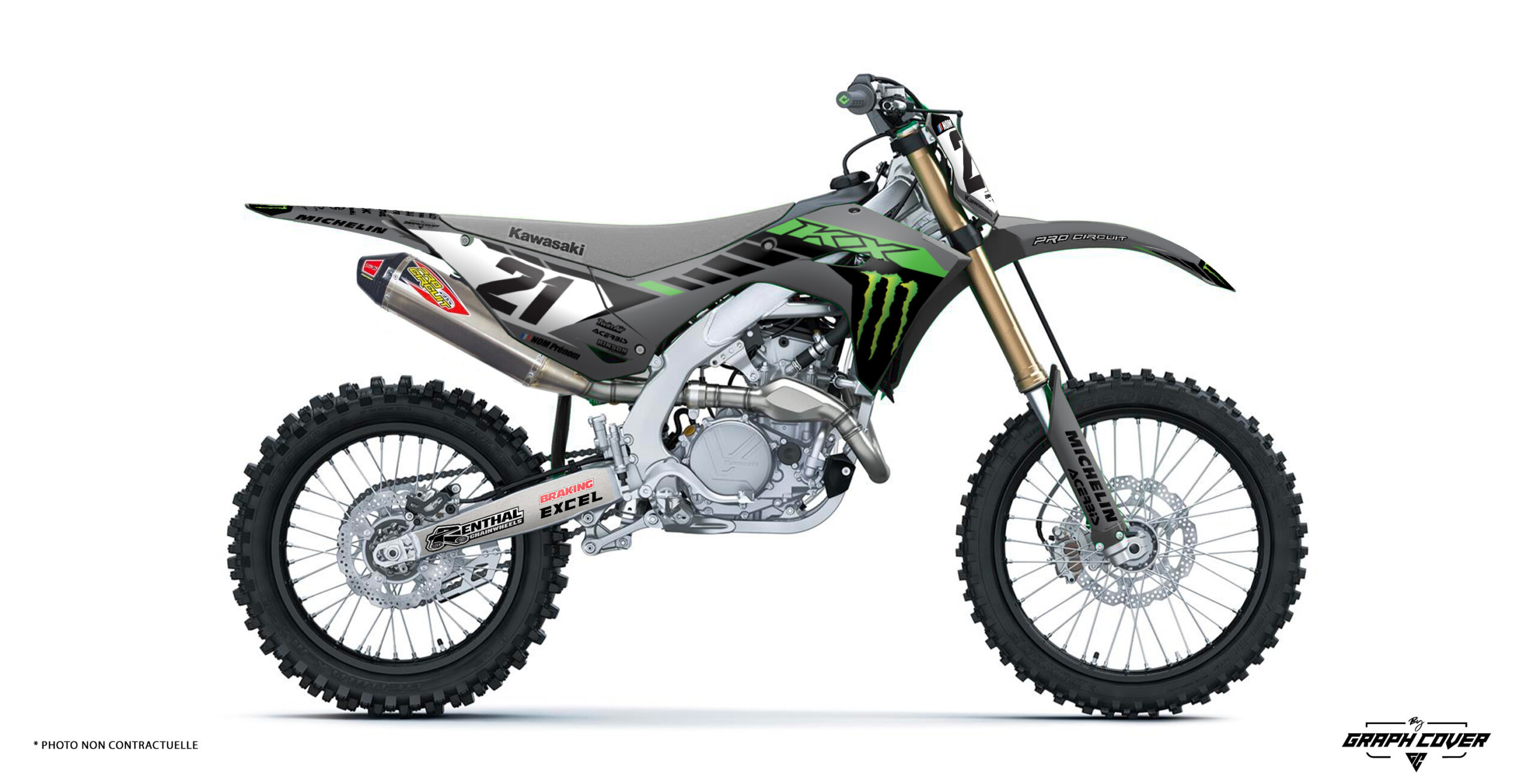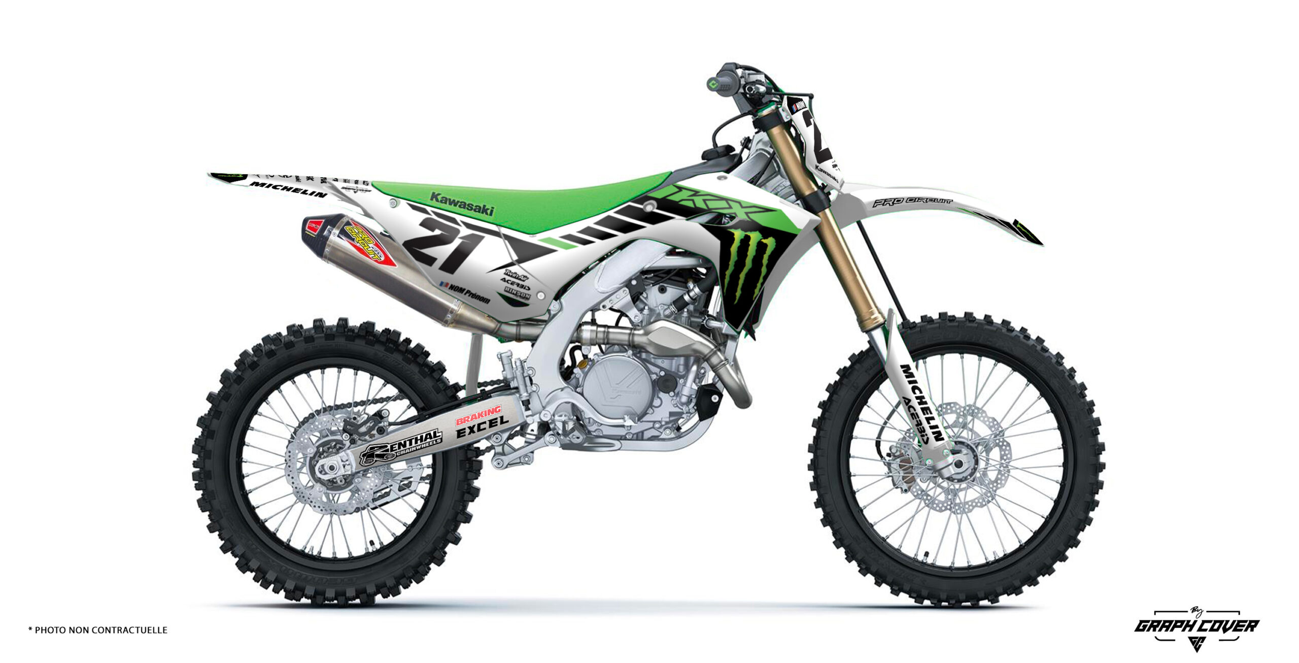 Kit Déco Kawasaki KXF 250 et KXF 450. Offrez-vous dès maintenant pour votre Moto Cross Kawasaki KXF un kit déco à votre gout en personnalisant votre kit. Plusieurs couleurs et finitions disponibles. Découvrez toute notre gamme graphisme pour votre Kawasaki KXF.