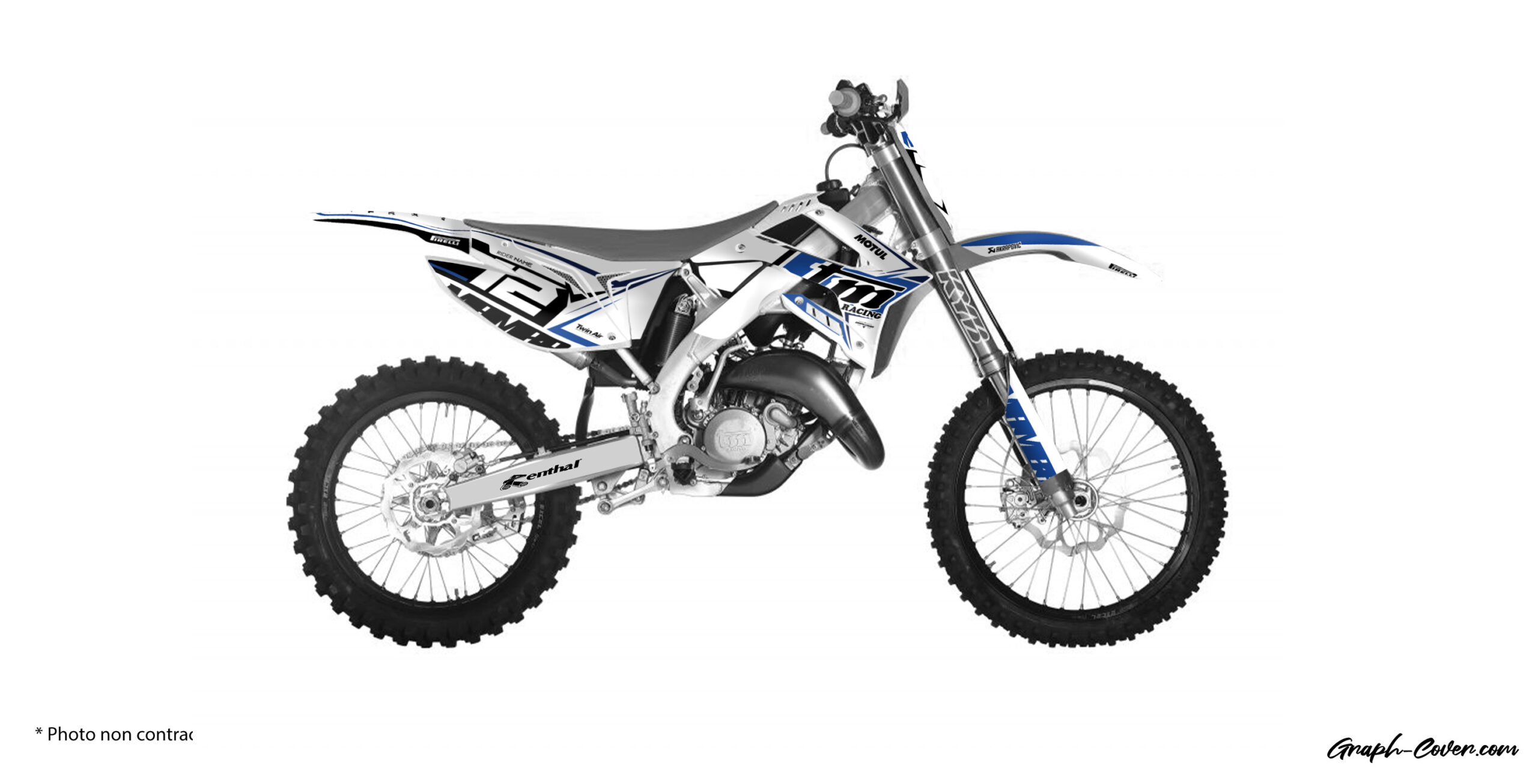 - Bénéficiez d’une personnalisation économique de votre motocross TM pour enduro et supermotard en choisissant la couleur du kit graphique, le nom et numéro, votre drapeau …
