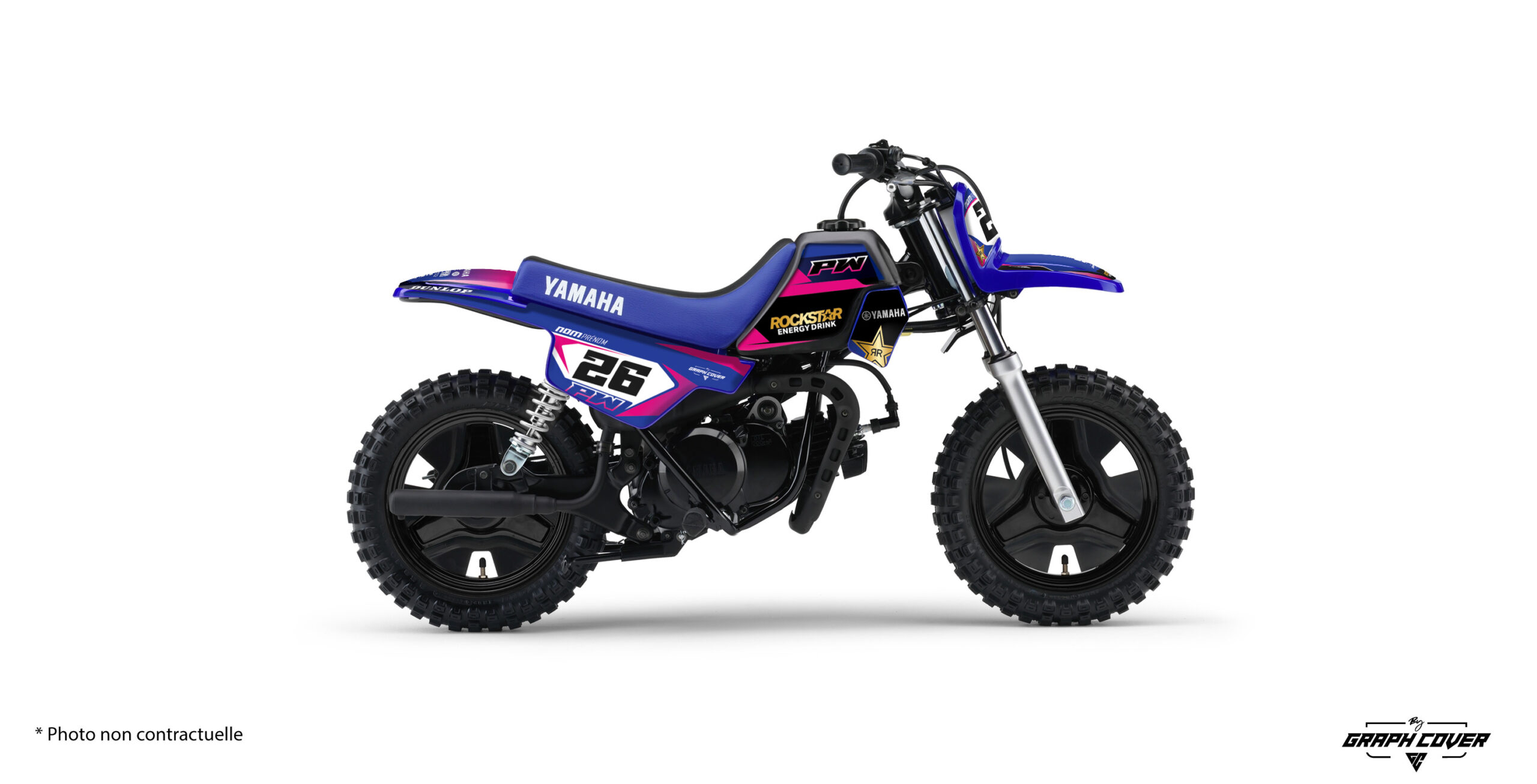 • Vous pouvez personnaliser votre moto tout terrain YAMAHA PW 50 pour la rendre unique en choisissant la couleur du kit, le nom et numéro, votre drapeau … des designs jeunes, design et sportifs au meilleur prix !