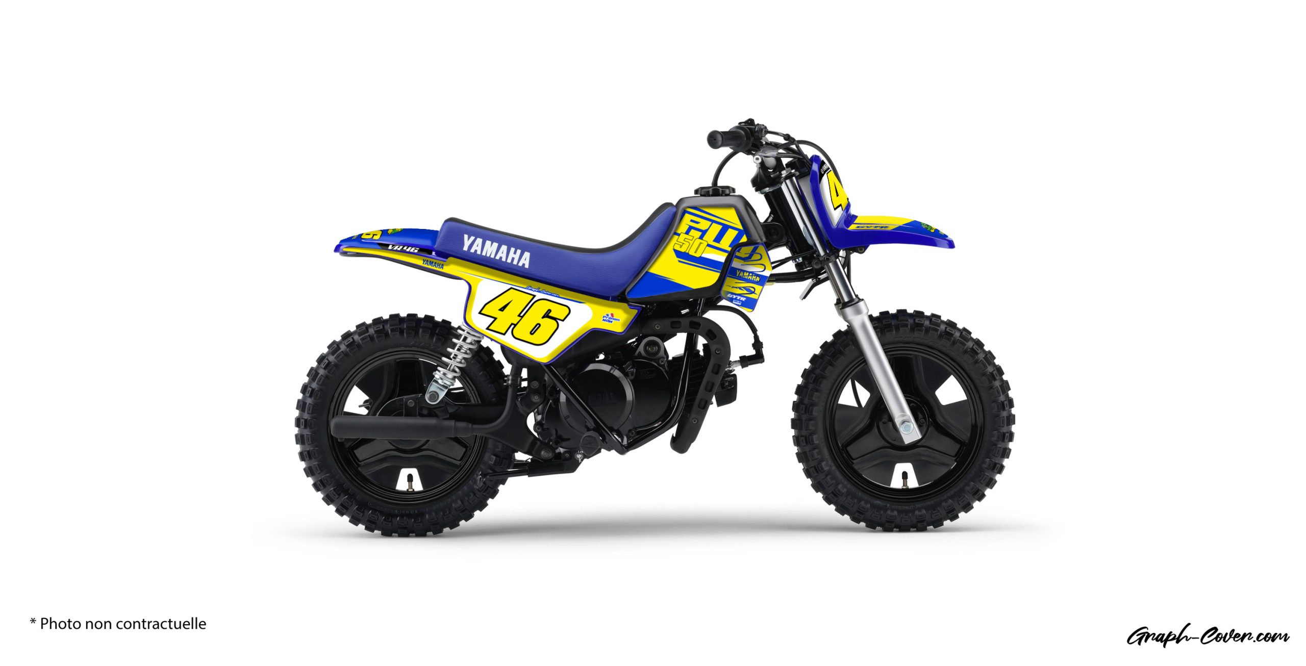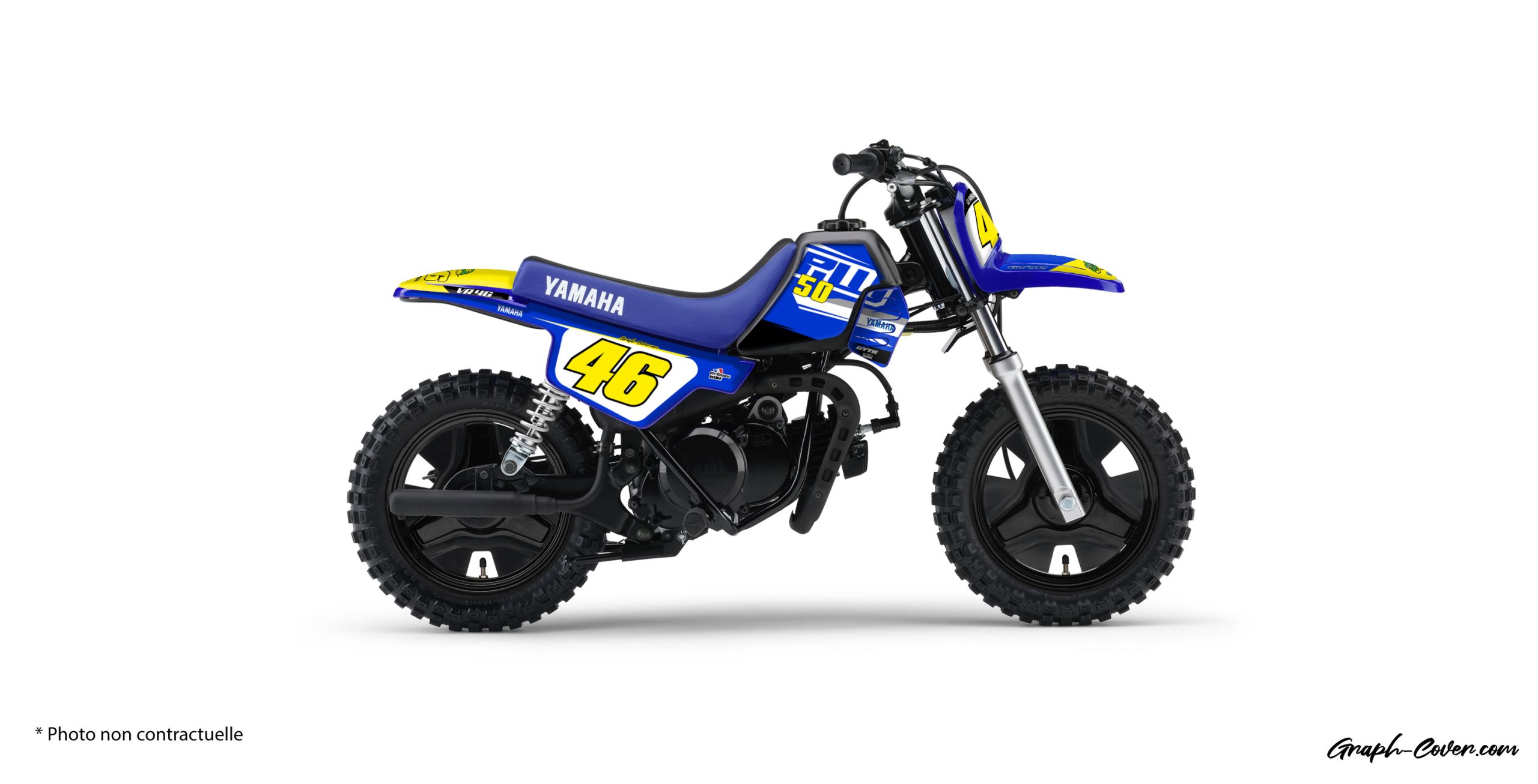 - Vous pouvez personnaliser votre moto tout terrain YAMAHA PW 50 au meilleur prix et la rendre unique en choisissant la couleur du kit, le nom et numéro, votre drapeau … des designs jeunes et sportifs !