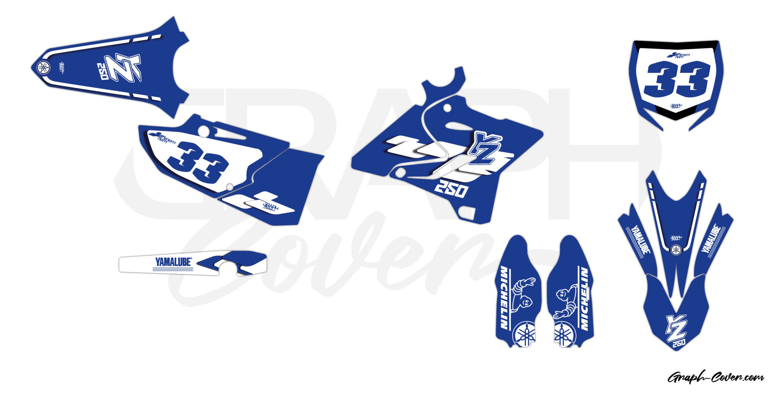 - Vous pouvez personnaliser votre moto tout terrain YAMAHA YZ 125 et 250 à un prix raisonnable et la rendre unique en choisissant la couleur du kit, le nom et numéro, votre drapeau …
