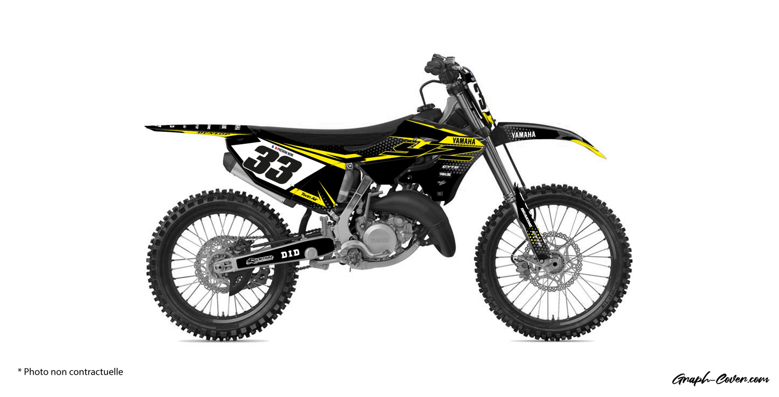 Composition du Kit déco Full : Plaque avant, Plaques latérales, Boîtes à air, Garde-boue avant, Garde-boue arrière, Ouies de radiateur, Protections de fourche, bras oscillants.
