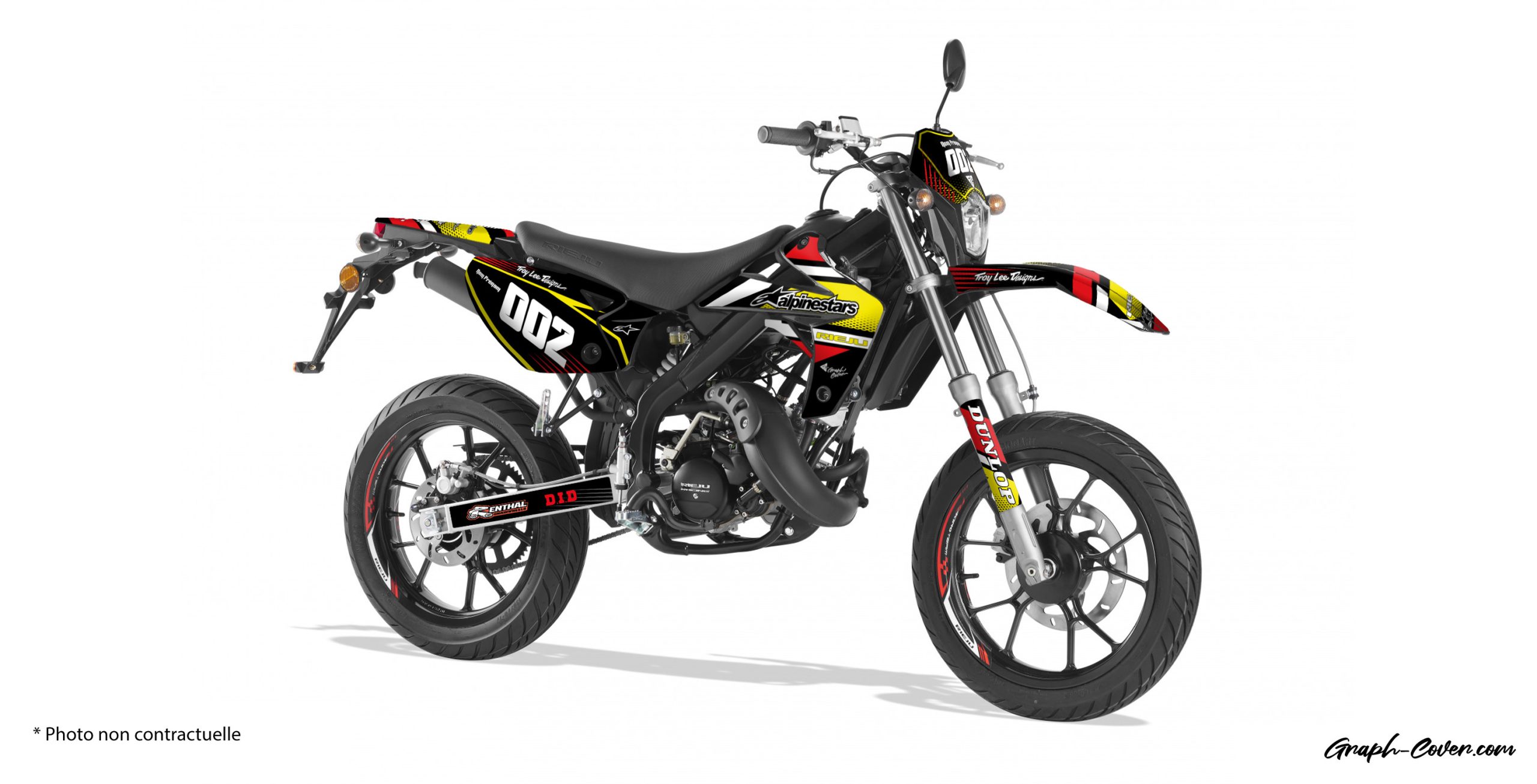 - Commande: Choisissez vos personnalisations et options pour votre kit déco et procédez au paiement de la commande. Pour un rendu optimal, nous vous recommandons de tenir compte de la couleur de votre véhicule, ainsi que celle des carénages le cas échéant. Pour rappel, un kit déco se compose de plusieurs pièces à positionner sur les carénages et ne recouvre pas le véhicule dans sa totalité.
