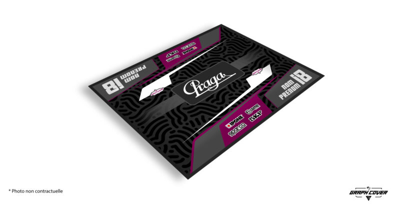 Le Tapis karting Praga Graph Cover est conçu pour les pilotes qui souhaitent allier performance, conformité et esthétisme. Il protège efficacement le sol du paddock tout en apportant une finition professionnelle à ton espace de travail. Grâce à sa conception sur mesure, il s’adapte parfaitement aux châssis Praga et répond aux exigences des compétitions officielles.
