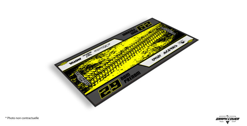 Conçu pour les pilotes exigeants, ce tapis moto Triumph personnalisé est homologué F.I.M., répondant à toutes les exigences environnementales des circuits officiels.