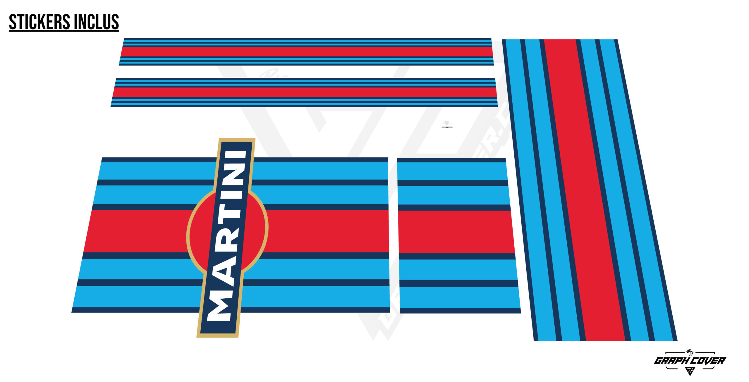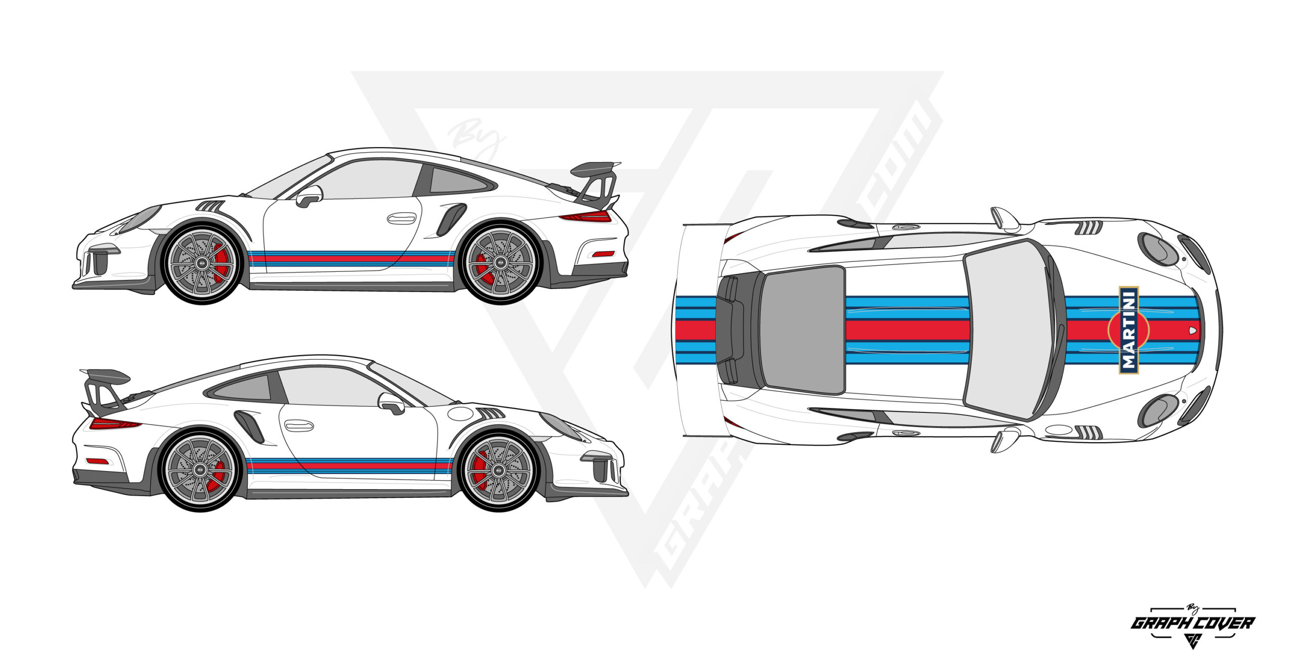 Le Kit stickers Bandes Martini Porsche 911 a été pensé pour épouser parfaitement les formes du modèle GT3 RS.