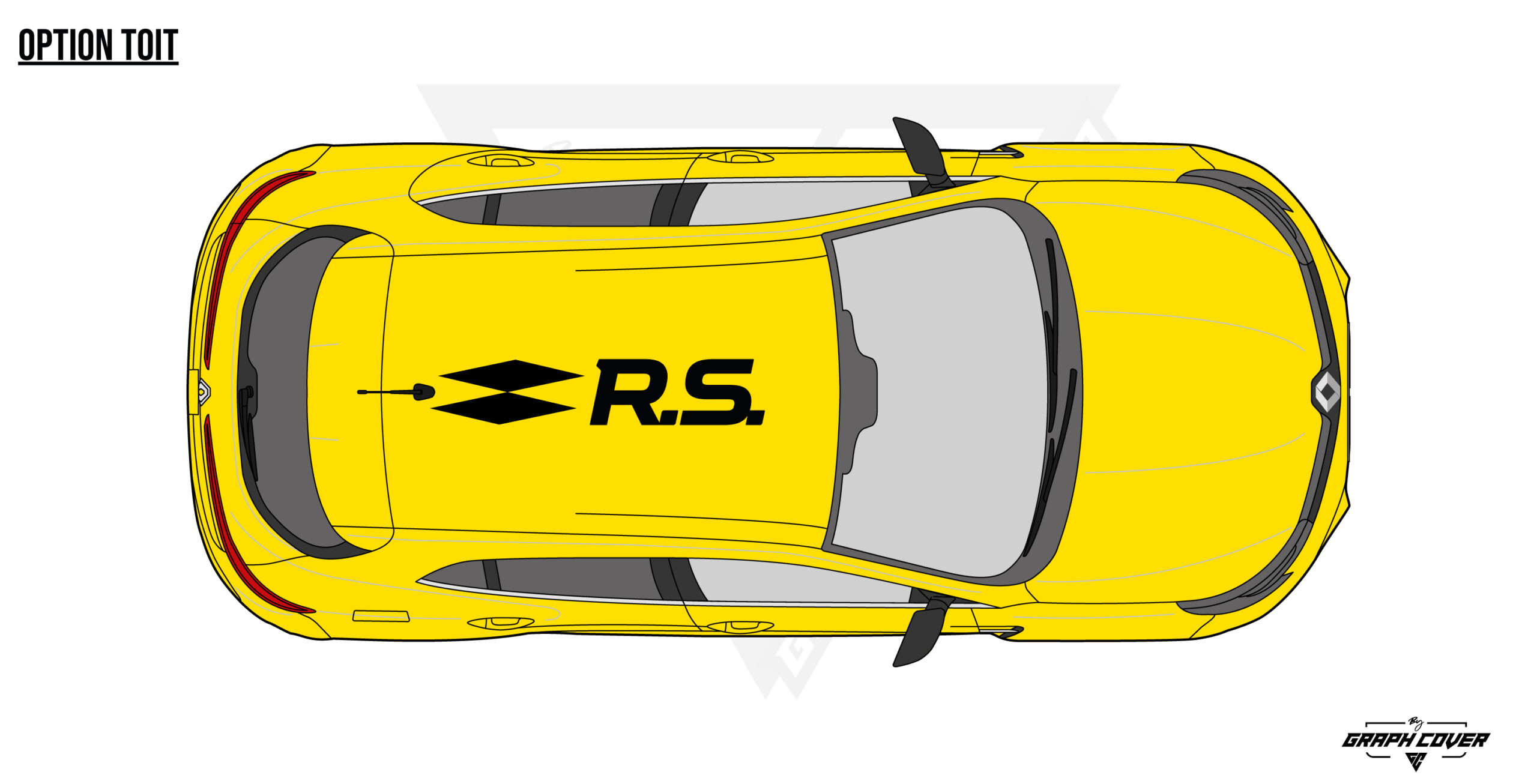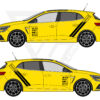 Les stickers sont présentés en noir sur une carrosserie jaune. Cependant, vous pouvez choisir la couleur qui correspond à votre projet. Vous avez accès à plusieurs couleurs standards : noir, blanc, gris, jaune, rouge, orange, bleu foncé ou bleu clair. Vous pouvez aussi sélectionner une couleur personnalisée en option.